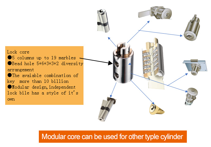 hardened springs which could change the random force. ●The top of key has bult-in locking technology dead pin secure function. ●The cylinder is made by high