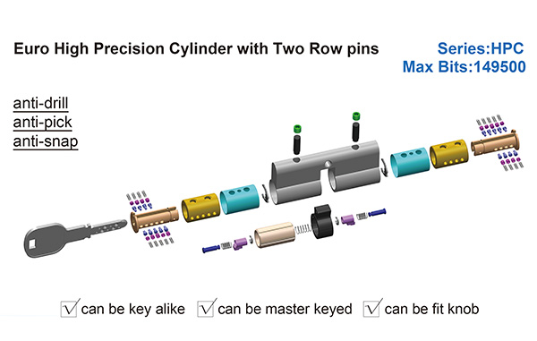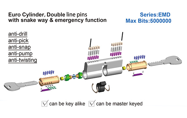 CYLINDER DOUBLE LINE PINS WITH SNAKE WAY AND EMERGENCY FUNCTION