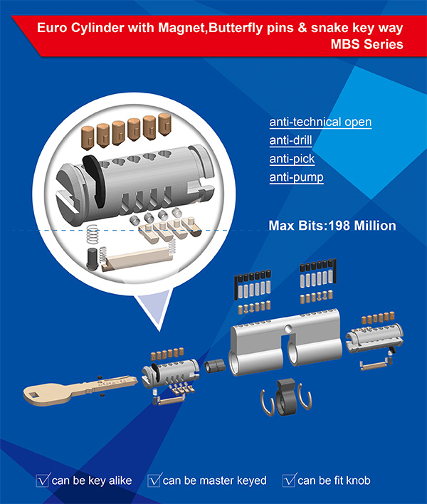 CYLINDER WITH MAGNET BUTTERFLY PINS& SNAKE KEY WAY